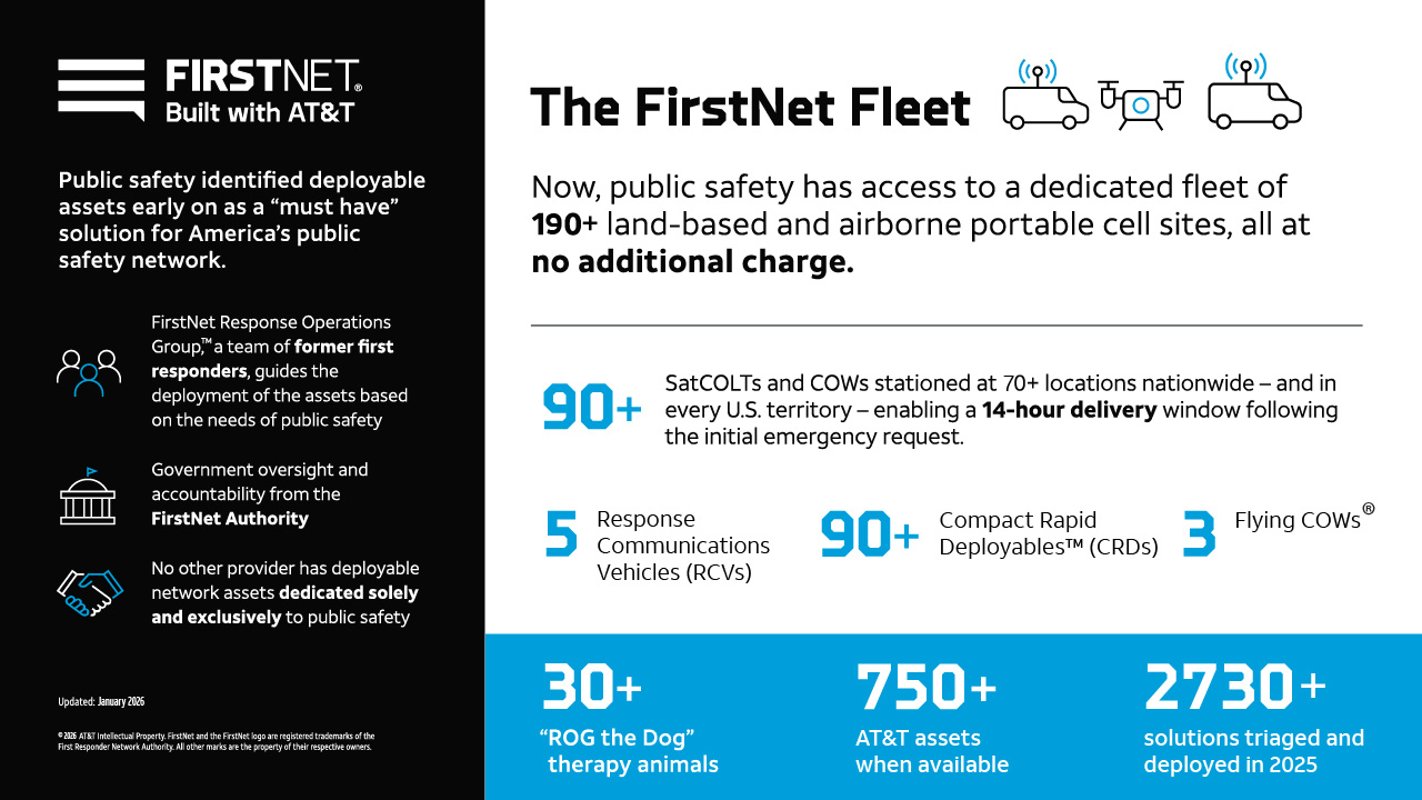 In addition to the FirstNet fleet, public safety can access more than 750 additional assets that are part of the AT&T fleet.